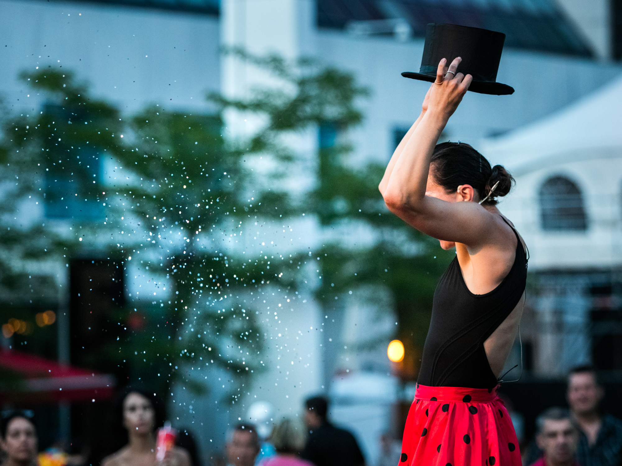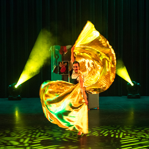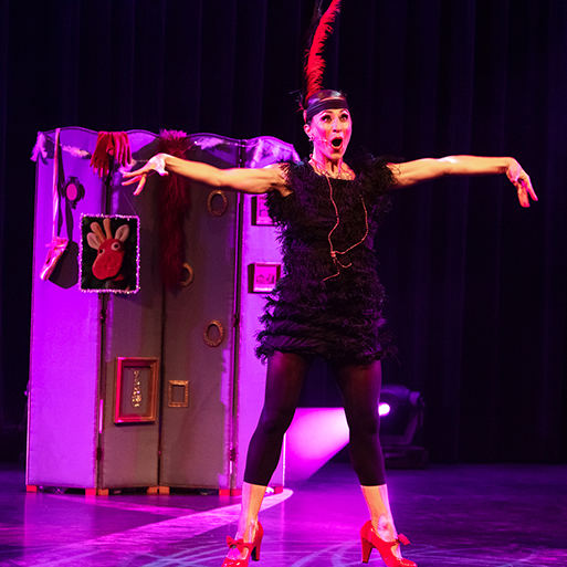 Eh bien, un vent de magie souffle sur l’empilade de coffres et de malles qui s’ouvrent les unes après les autres. Tout à coup, les rythmes s’emballent pour créer un spectacle électrisant, une course folle où les métamorphoses se succèdent, nous invitant par l’occasion à pénétrer des univers plus colorés les uns que les autres. Du Charleston au Gumboot en passant par le Bollywood et la Samba, Fifi bric-à-brac nous offre ses carnets de voyage teintés de poétiques pirouettes et d’arabesques abracadabrantes. Une aventure grisante qui décoiffe et dégourdit, pour le plaisir des grands et des petits !